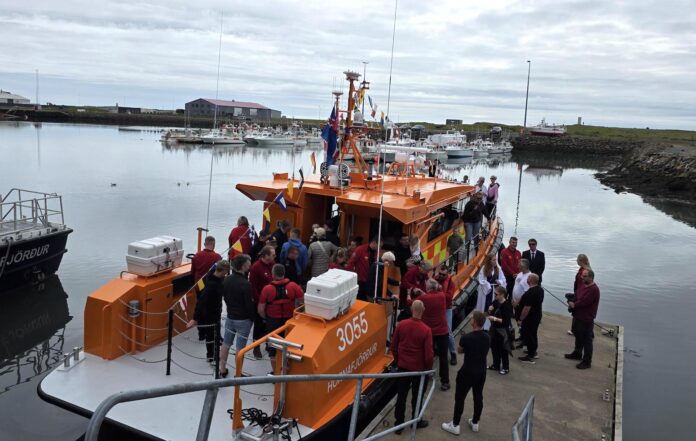 Björgunarskipið Ingibjörg kom til Hafnar í Hornafirði við hátíðlega athöfn síðastliðinn laugardag. Fjöldi Hornfirðinga lagði leið sína niður á bryggju til að taka á móti skipinu, sem sigldi frá Reykjavík með viðkomu í Vestmannaeyjum.