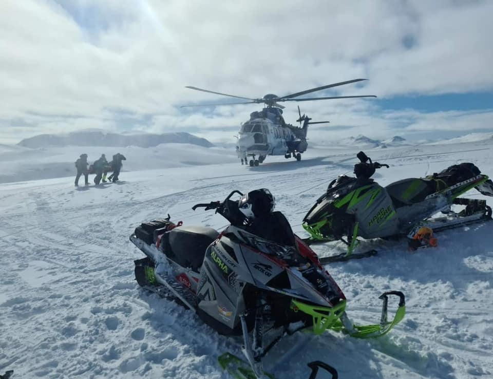 Þyrla Landhelgisgæslunnar var einnig kölluð til. Sleðahópur FBSH og Dagrenningar kom fyrstur á vettvang og hlúði að hinum slasaða uns þyrlan lenti á vettvangi um 20 mínútum síðar.