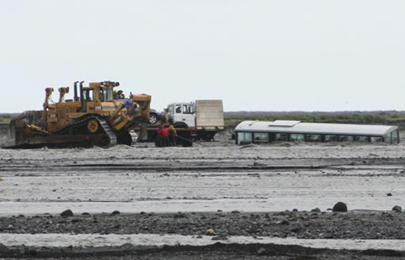 Björgunarsveitarmenn tóku strax stjórn á vettvangi og var Man-trukkur frá Víkverjum sendur strax út að rútunni og fólkið ferjað yfir á pallinn. Síðan var fólkið ferjað í land á öðrum trukki sem var á svæðinu og hefur verið notaður til að ferja bíla yfir ána.