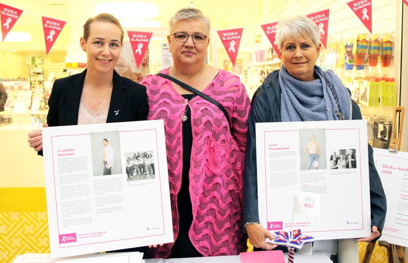 Ljósmyndasýningin BLEIK var opnuð í Krónunni á Selfossi í dag þar sem Bleika slaufan 2018 var einnig afhjúpuð. Sýningin byggir á persónulegum sögum tólf kvenna sem greinst hafa með brjósta- eða leghálskrabbamein og farið í meðferð en einnig er fjallað um mikilvægi vinahópa í því ferli.
