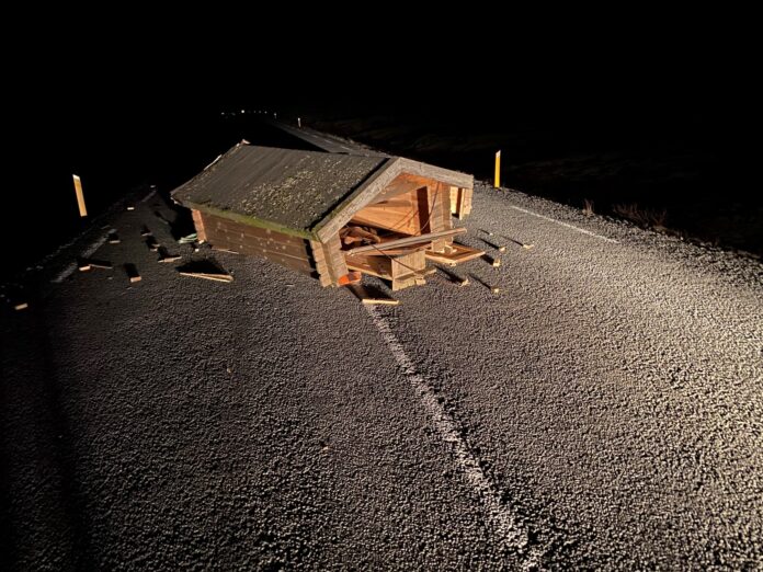 Í tilkynningu frá lögreglunni segir að líklega hafi kofinn verið í betra ástandi skömmu áður, á palli eða kerru.