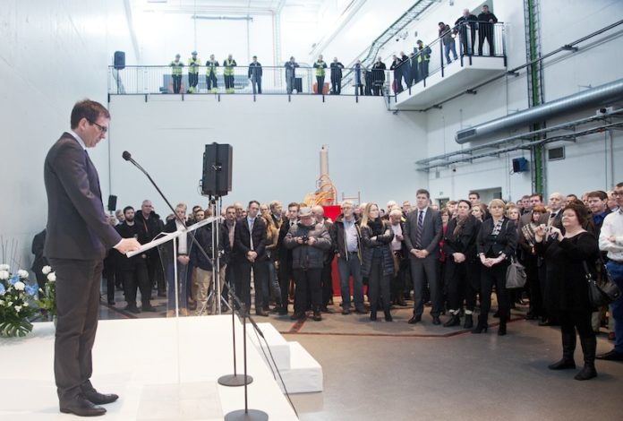 Það voru Bjarni Benediktsson, fjármála- og efnahagsráðherra, og Ragnheiður Elín Árnadóttir, iðnaðar- og viðskiptaráðherra, sem gangsettu stöðina.