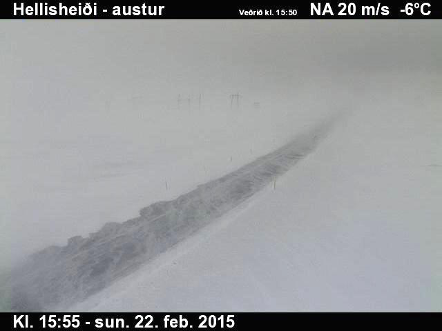 Á Hellisheiði mun lægja undir miðnætti en veðrið gengur ekki niður að gagni undir Eyjafjöllum fyrr en í nótt og ekki fyrr en undir morgunn austur í Öræfum. Með morgninum verður vindur N-stæðari, víða enn hvassviðri og stormur austast á landinu.