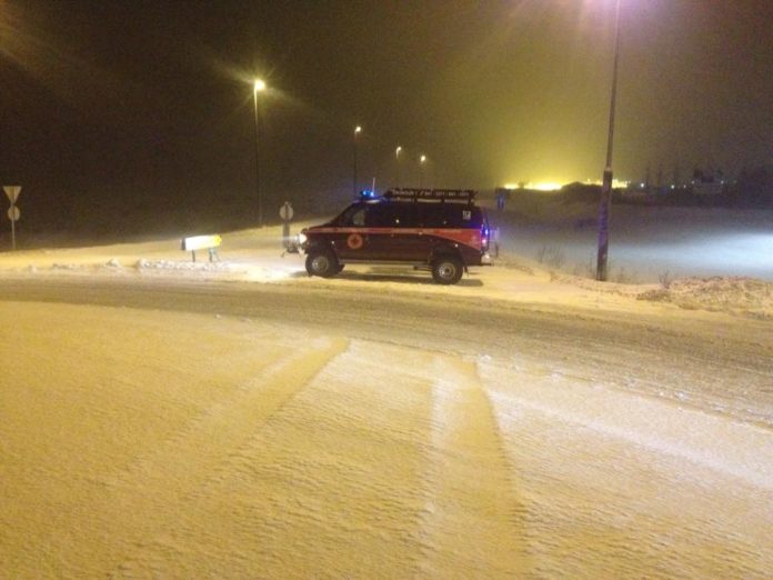 Djúp lægð fylgir á eftir óveðursskilunum sem fara yfir norðan- og austanvert landið í kvöld. Snýst í SV-átt og kólnar aftur niður undir frostmark með éljum undir miðnætti. Hvessir aftur og suðvestan- og vestanlands er reiknað er með allt að 18-23 m/s um tíma í nótt og fram á morguninn. Einna hvassast verður á Suðurnesjum og búist við að skyggni verði lítið í hryðjunum.