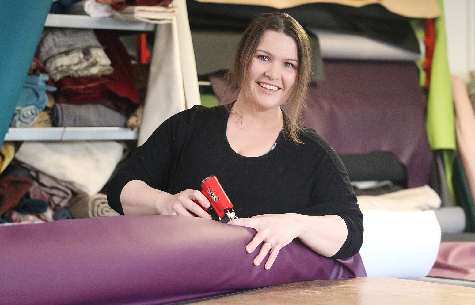 Það eru ekki bara netverslanir sem njóta góðs af samkomubanninu. Hjá Berglindi Hafsteinsdóttur, húsgagnabólstrara hjá Bólsturlist á Selfossi, hefur verið vitlaust að gera síðan bannið var sett á.