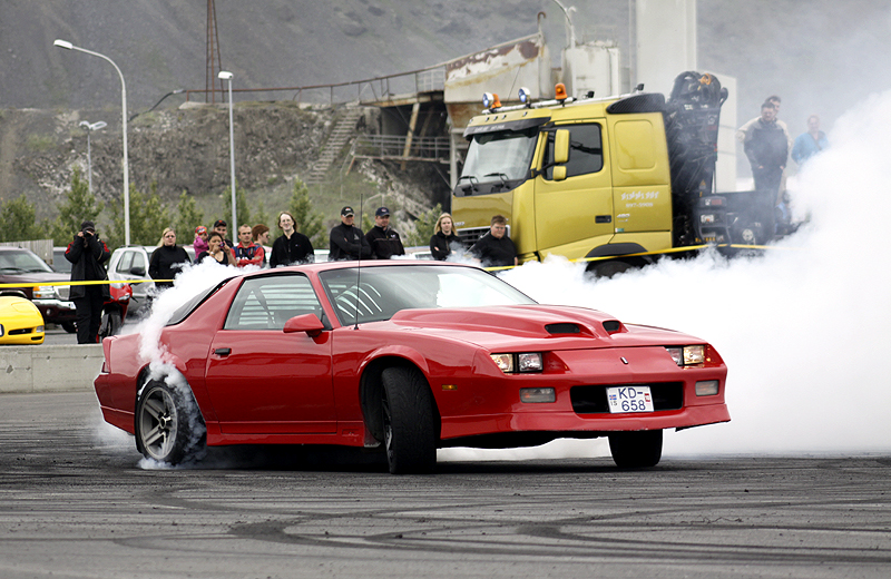 Meðal annars var sýnt reykspól með frjálsri aðferð, ekið var á teygjuramp og keppt í kassabílaralli.