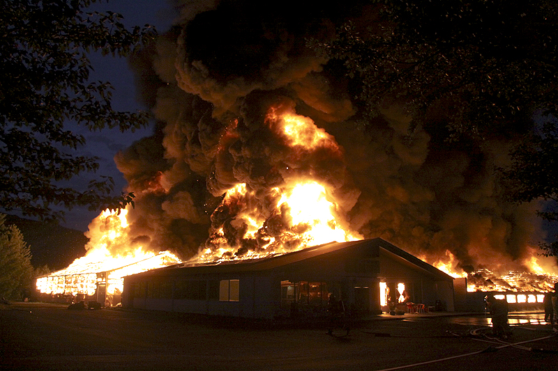 Ekki hefur þurft að rýma hús í nágrenninu vegna eldsins. Mikið logn er í Hveragerði sem verður til þess að reykurinn fer beint upp í loft.
