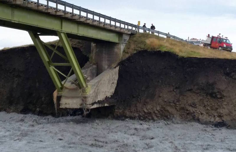 Brúnni var lokað fyrir allri umferð í gær og svo verður áfram næstu daga og vikur, þar til tekist hefur að treysta undirstöður brúarinnar, að því er fram kemur í fréttum RÚV.