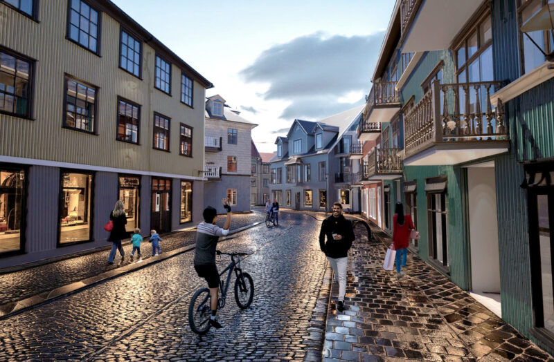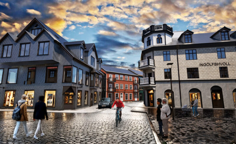 Húsin í þessum nýja áfanga miðbæjarins eru öll ættuð úr miðbæ Reykjavíkur. Húsin voru öll byggð um aldamótin 1900 og mörg þeirra brunnu til kaldra kola í brunanum mikla árið 1915.