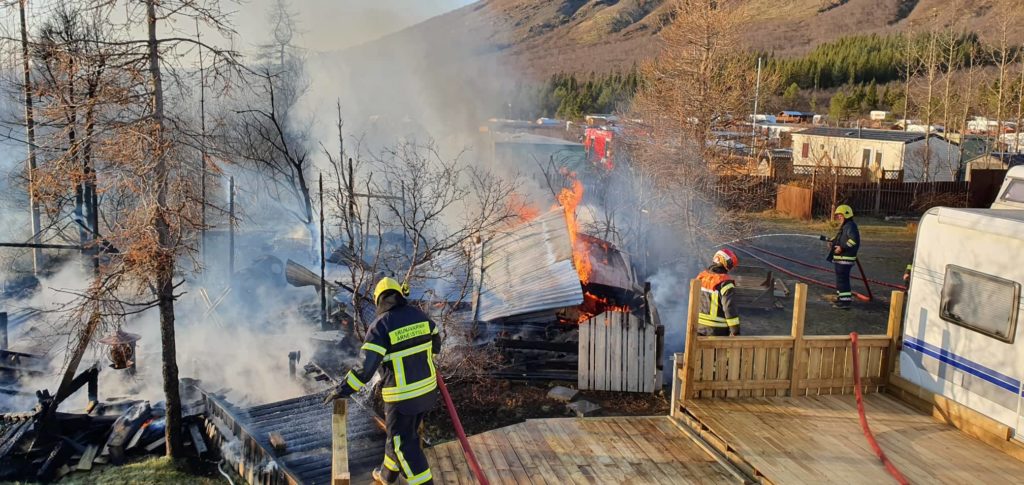 Eldur kom upp rétt fyrir klukkan 10:00 í morgun í hjólhýsabyggðinni á Laugarvatni.