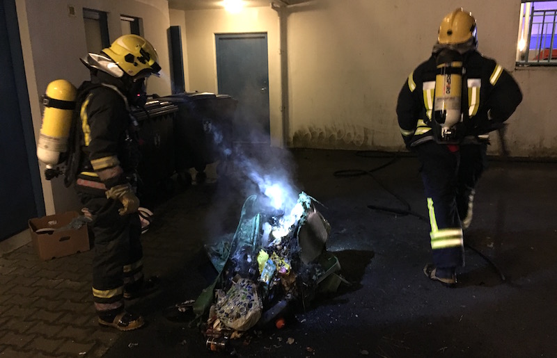 Laust fyrir klukkan hálf tólf í kvöld var Neyðarlínunni tilkynnt um eld í fjölbýlishúsi við Álftarima á Selfossi. Þar kviknaði í stórri ruslatunnu í geymslu á neðstu hæð hússins.