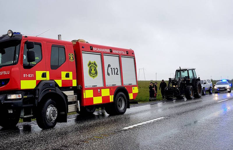 Slökkvitæki var í traktornum og náði ökumaðurinn að slá verulega á eldinn áður en slökkviliðsmenn Brunavarna Árnessýslu frá Selfossi mættu á staðinn.