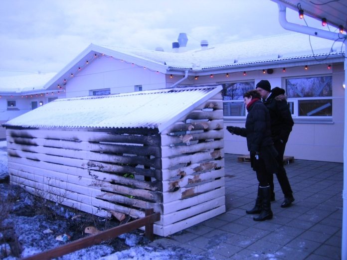 Eldur kom upp í ruslagámi við leikskólann Óskaland í Hveragerði um klukkan hálf tvö í nótt. Vindátt var óhagstæð svo að hætta var á að eldurinn læstist í húsinu.