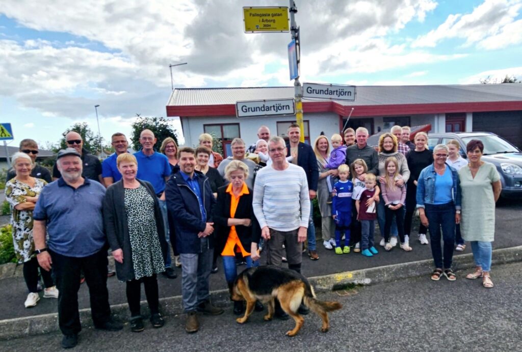 Grundartjörn á Selfossi var valin fallegasta gatan en þar er götumyndin gróin og vel hirt og við götuna eru fallegir og snyrtilegir garðar sem saman mynda fallega heild. Hefð er fyrir því að elsti og yngsti íbúi götunnar afhjúpi skilti í götunni af þessu tilefni. Það gerðu þær Kristrún B. Hálfdánardóttir, 83 ára í Grundartjörn 7 og Ísold Esther Sindradóttur, 14 mánaða í Grundartjörn 12. Foreldar hennar eru Jóhanna Rut Arndísardóttir og Sindri Ragnarsson. Verðlaunin voru afhent síðdegis á föstudag að viðstöddum flestum íbúum götunnar.