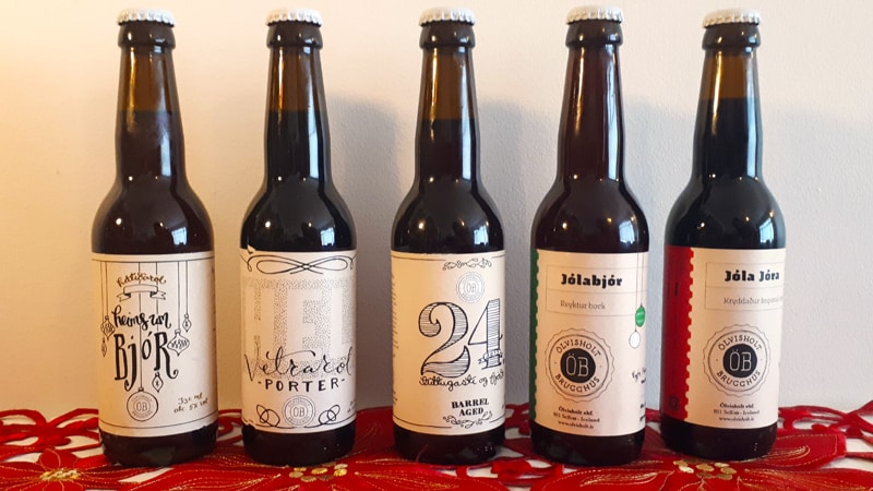 Ölvisholt í Flóahreppi býður upp á fimm jólabjóra þetta árið. Það eru Jólabjór, sem er reyktur bock, Hel vetraröl, sem er porter, Heims um bjór, Jóla Jóra, sem er kryddaður stout og svo Tuttugasti og fjórði, sem er tunnulegið barley wine.