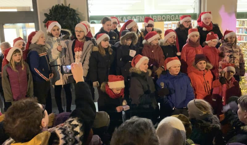 Í dag klukkan 18 var formlega kveikt á jólaljósunum í Sveitarfélaginu Árborg, á tröppum bókasafnsins á Selfossi.