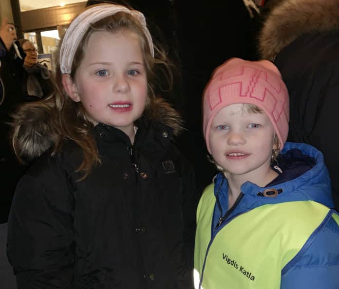 Það voru afmælisbörnin Embla Dís Sigurðardóttir og Vigdís Katla Guðjónsdóttir, sem eru 6 ára í dag, sem kveiktu ljósin ásamt starfsmönnum sveitarfélagsins.