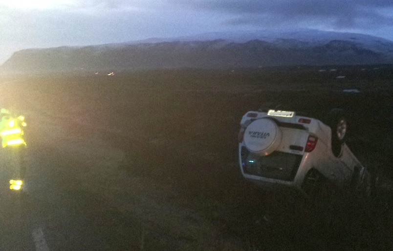 Síðdegis varð svo bílvelta við Kerið í Grímsnesi þar sem ökumaður missti stjórn á jepplingi í hálku þar sem hann ók niður brekku. Þrír voru í bílnum og sluppu allir án meiðsla en bíllinn er mikið skemmdur.