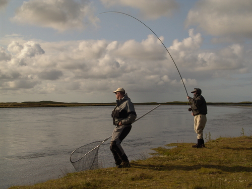 Veiðimenn eru enn að egna fyrir laxinum í Ytri-Rangá og hafa aflabrögð verið góð þrátt fyrir misgóð skilyrði.