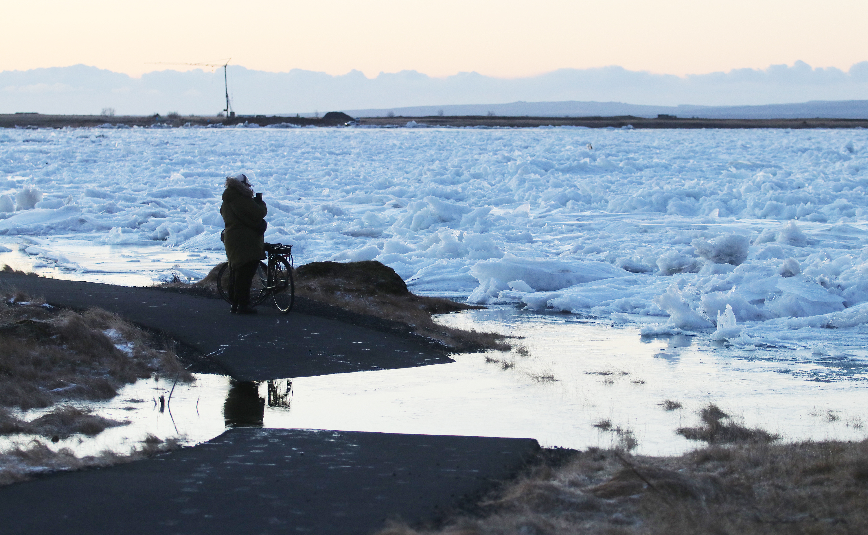 Það hefur verið mikil umferð við ána í dag og eru bæjarbúar mjög áhugasamir um þetta sjónarspil. Að svo stöddu er engin hætta á ferðum og engin mannvirki í hættu. Í gær var unnið að því að grafa yfir nýju hitaveitulagnirnar við árbakkann ef jakar úr ánni færu á land og yfir opna skurði með nýju hitaveitulögninni.