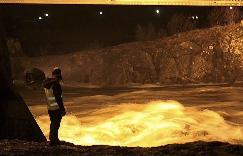 Eins og fram hefur komið er venjulegt meðalrennsli í þessu vatnsmesta fljóti landsins 380 m3/sek en rennslið í Ölfusá hefur fjórfaldast frá því fyrir viku síðan þegar það var 308 m3/sek.