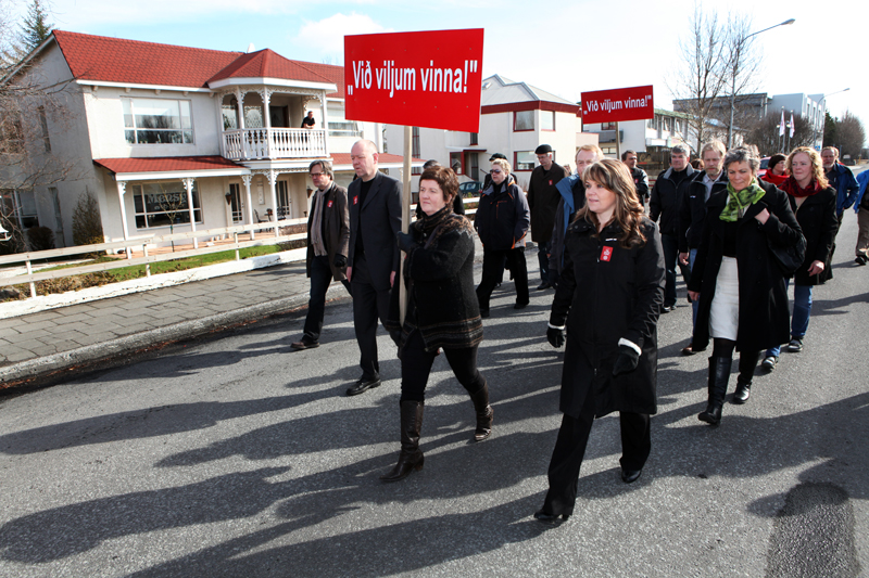 Nokkrir tugir fólks gengu í kjölfar hestamanna, lögreglu og lúðrasveitar í kröfugöngu eftir Austurveginum á Selfossi í morgun.