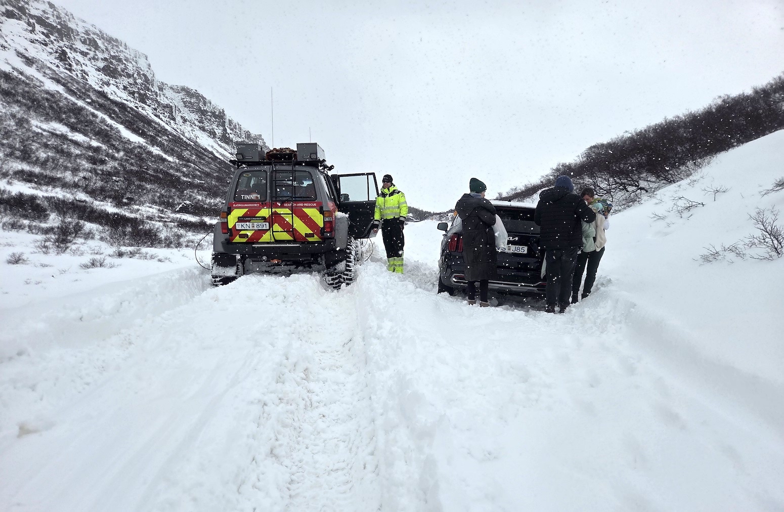 Færðin var ekki góð á veginum og lauk bíltúrnum þannig að bílaleigubíll fólksins sat pikkfastur í Jónslaut. Fimm fullorðnir voru í bílnum ásamt einu barni og voru ferðalangarnir fluttir á Ion Hótel Nesjavelli en bíllinn var skilinn eftir.
