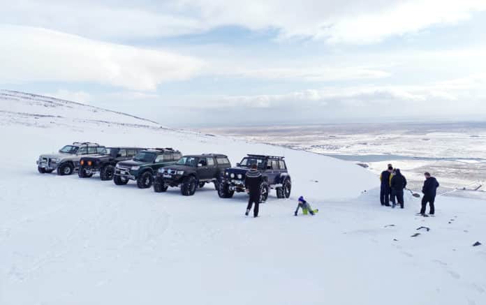 Það þarf ekki að taka það fram að félagarnir fóru ekki hina hefðbundnu gönguleið heldur óku þeir fáfarinn slóða úr Ölfusi upp á Grafningsháls og þaðan upp á fjallið.