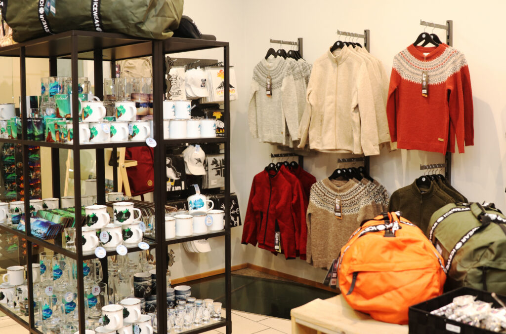 Í Icemart Souvenirs er meðal annars hægt að fá útivistarfatnað, minjagripi, sundfatnað, handklæði, sokka, göngustafi og ullarnærfatnað – svo fátt eitt sé nefnt. Verslunin er opin frá klukkan 9 til 18 alla virka daga og frá klukkan 9 til 16 um helgar.