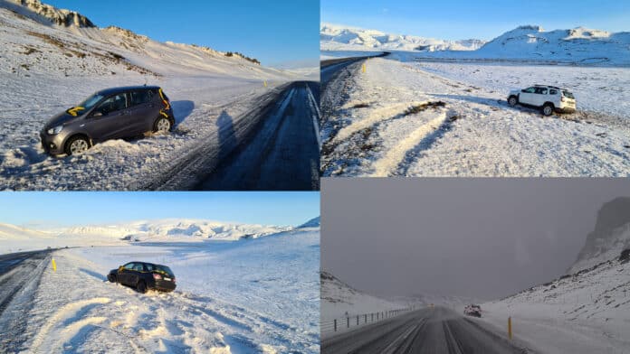 Samkvæmt upplýsingum frá lögreglunni á Suðurlandi urðu nokkur óhöpp þarna á svæðinu síðdegis á sunnudag en eftir því sem best er vitað urðu teljandi meiðsli á ökumönnum eða farþegum þeirra.