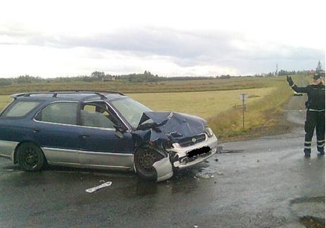 Annar bílanna hafnaði ofan í skurði utan vegar en báðir eru bílarnir mikið skemmdir og a.m.k. annar þeirra ónýtur.