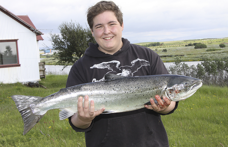 Veiði hófst kl. 7 í morgun og hálftíma síðar hafði Viðar Steinarsson á Kaldbak landað þeim fyrsta, þriggja punda hæng.