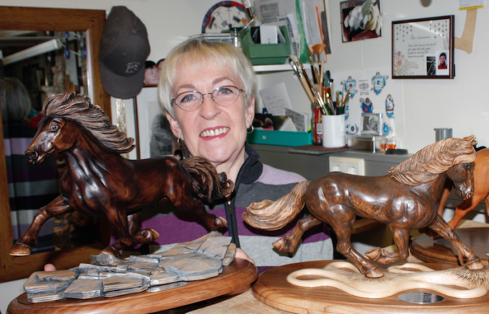 Sigga, sem varð sjötug í vor var að ljúka við að skera út skeiðhest en hún hyggst skera út allar gangtegundir íslenska hestsins. Hún er komin með töltara og brokkara og stefnir að því að fetið og stökkið verði til á næsta ári.