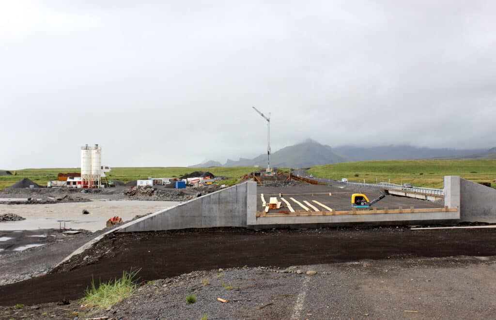 Um þessar mundir er Vegagerðin að byggja nýja brú yfir Jökulsá og hefur sú framkvæmd haft í för með sér efnisflutninga í ánni. Þessir efnisflutningar og miklir vatnavextir vegna úrkomu síðustu daga virðast hafa grafið frá strengnum og ljósleiðaranum sem lokið var að leggja á síðasta ári.