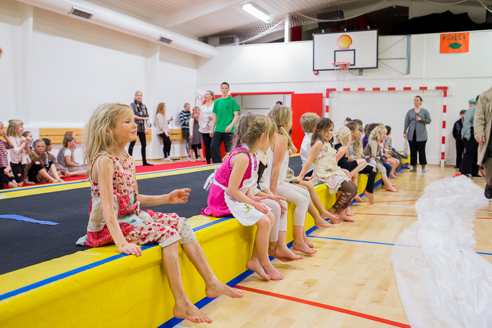 Þetta var í fyrsta skipti sem fimleikadeildin og barnakórinn stilltu saman krafta sína og að sögn aðstandenda sýningarinnar verður leikurinn klárlega endurtekinn að ári.