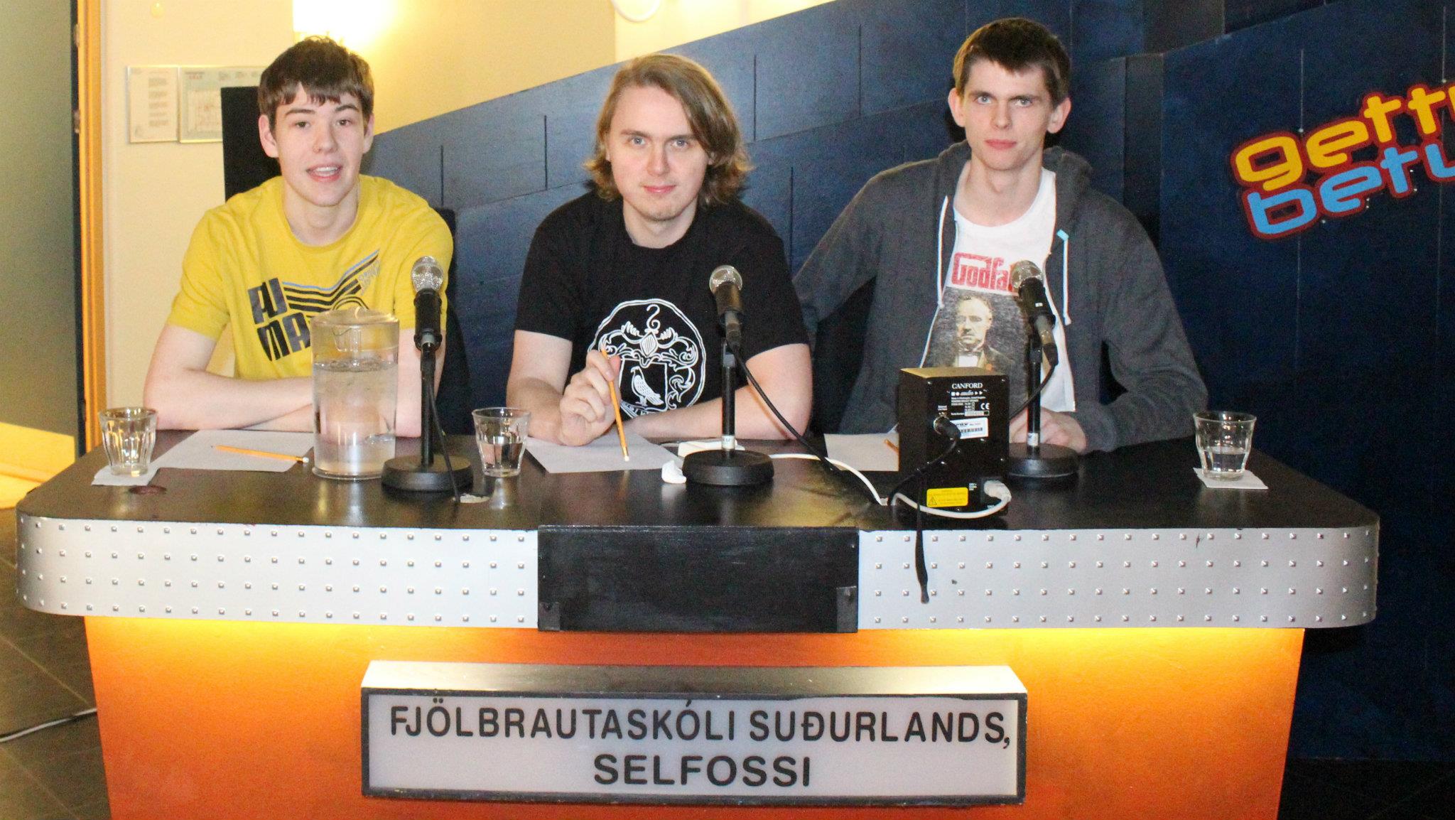 Lið FSu skipa þeir Eyþór Heimisson, Gunnlaugur Bjarnason og Gísli Axelsson.