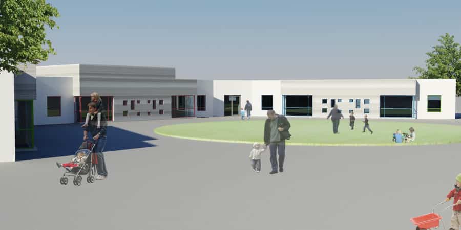 Nýja leikskólabyggingin er staðsett við Vallarbraut og þá verður allt skóla- og íþróttasvæði á sama stað.