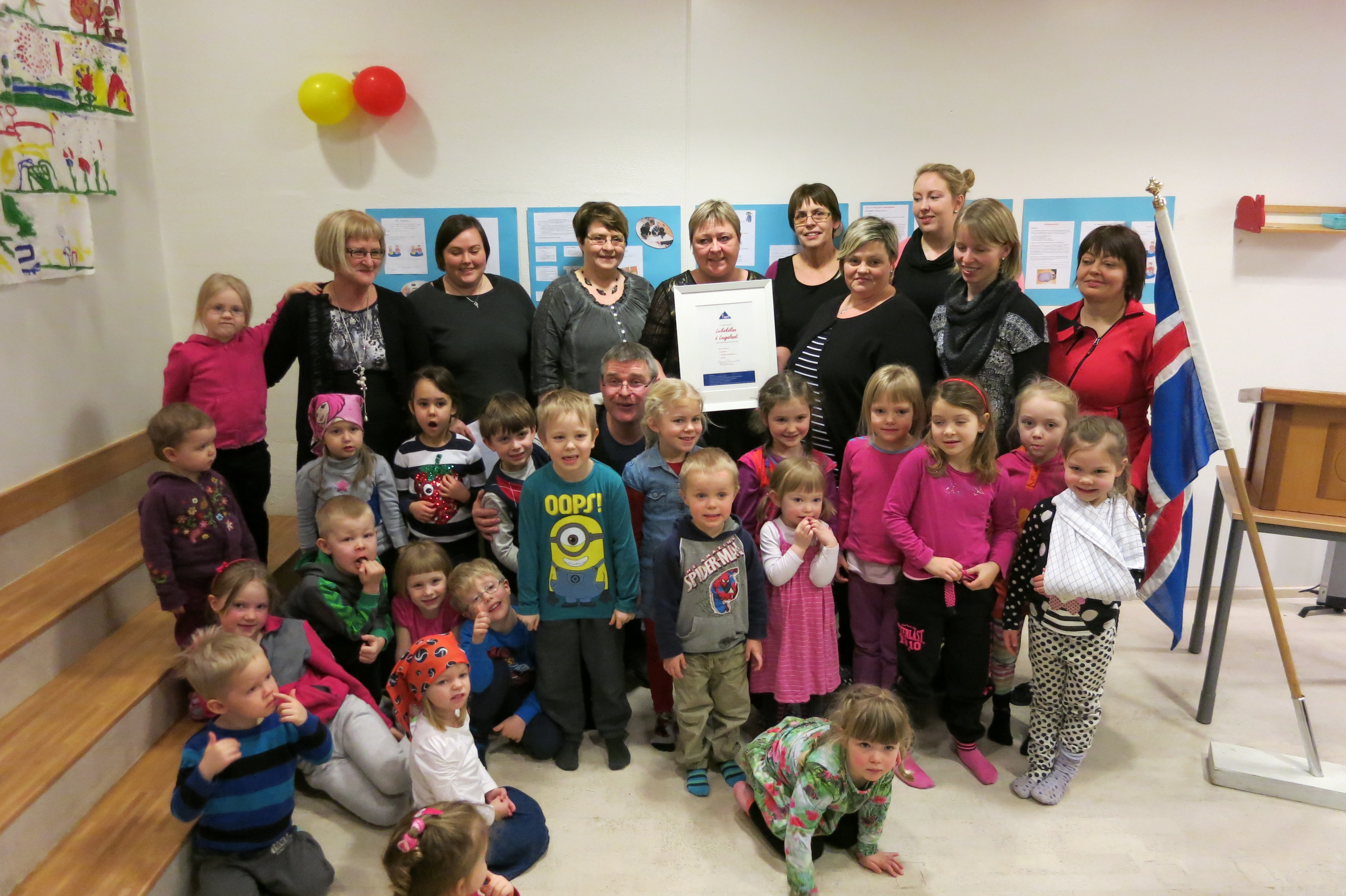 Bjarni Bjarnason verkefnisstjóri og ART þjálfari kom og afhenti starfsfólki viðurkenningu og leikskólanum vottunina. Margir góðir gestir komu og ávörpuðu samkomuna í tilefni þessarar gleðistundar. Elstu börnin sögðu gestum hvað þau höfðu lært í ART, sungu ART-lagið og fóru í leik. Krakkarnir bökuðu bollur og foreldraráð leikskólans bauð upp á tertu og afhenti starfsfólki litla gjöf sem þakklætisvott fyrir vel unnin störf.