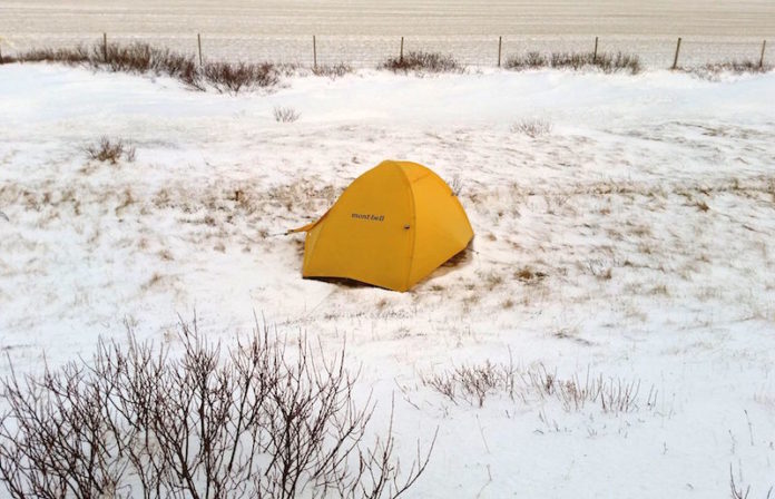 Lögreglan á Suðurlandi hefur fengið nokkrar tilkynningar síðustu daga um tjaldferðalang sem fer rólega yfir og hafa vegfarendur áhyggjur af honum.