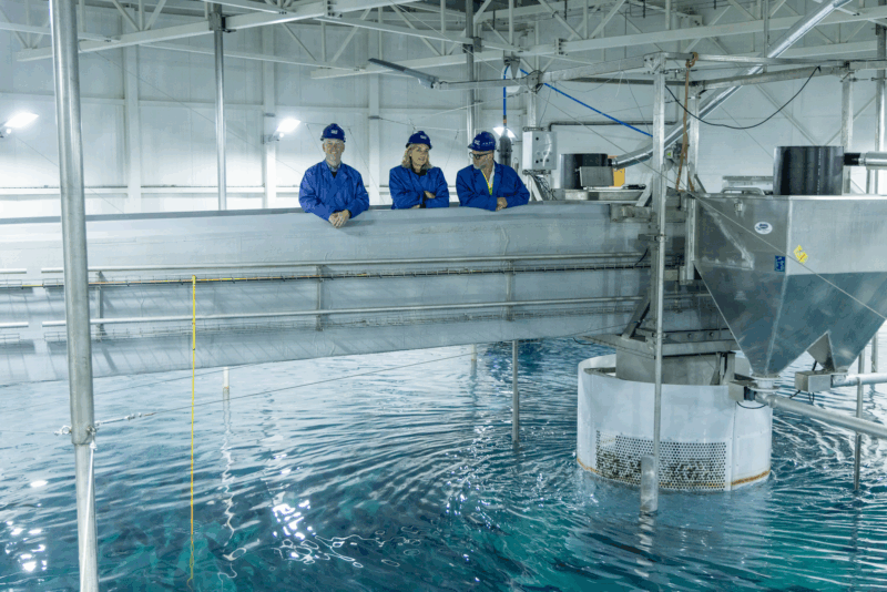 „Við erum með afar ánægð með þennan mikilvæga áfanga í uppbyggingu félagsins að taka þessa nýju tanka í rekstur. Á næstu vikum munum við hefja slátrun og útflutning á slægðum fimm kílóa laxi sem er mjög eftirsótt vara á alþjóðlegum mörkuðum og við höfum þegar fyllt upp í pantanir,” segir Eggert Þór Kristófersson, forstjóri First Water. Hann segir laxfiskinn dafna vel í tönkunum og að allur tæknibúnaður virki sem skyldi.
