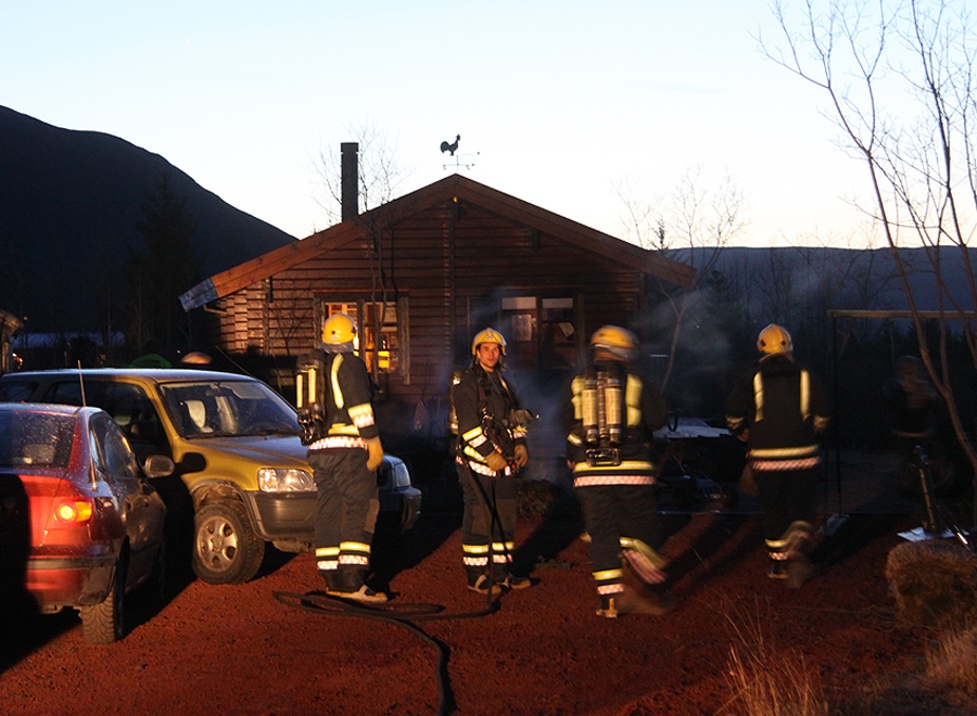 Þegar lögregla, sjúkraflutningamenn og fjölmennt slökkvilið frá Selfossi kom á staðinn kom í ljós að húsráðendur í sumarhúsi voru að brenna trjágreinar og hlaust töluverður eldur af.