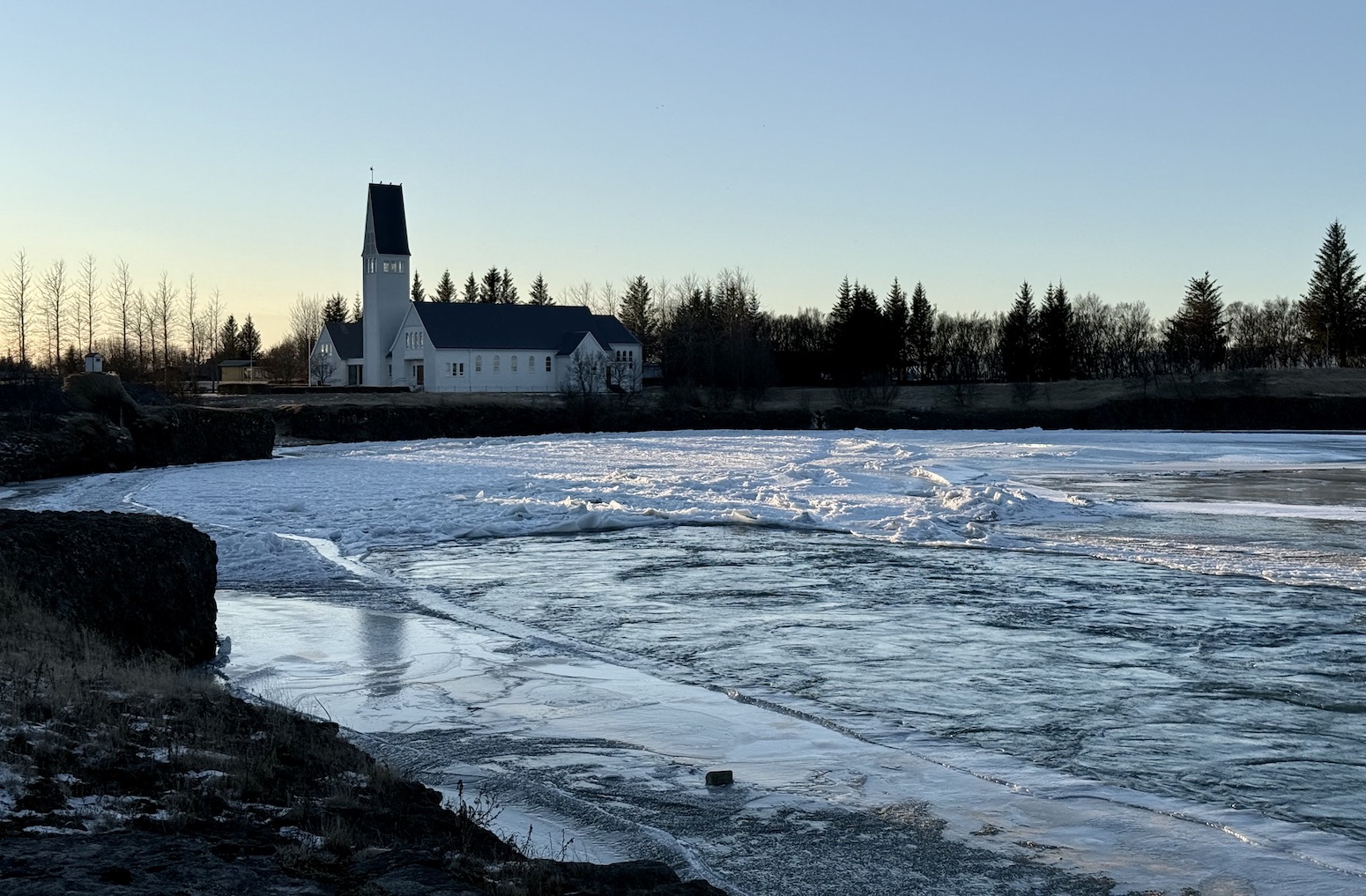 Mjög hættulegt er að fara út á ísinn á Ölfusá enda er hann aldrei öruggur.