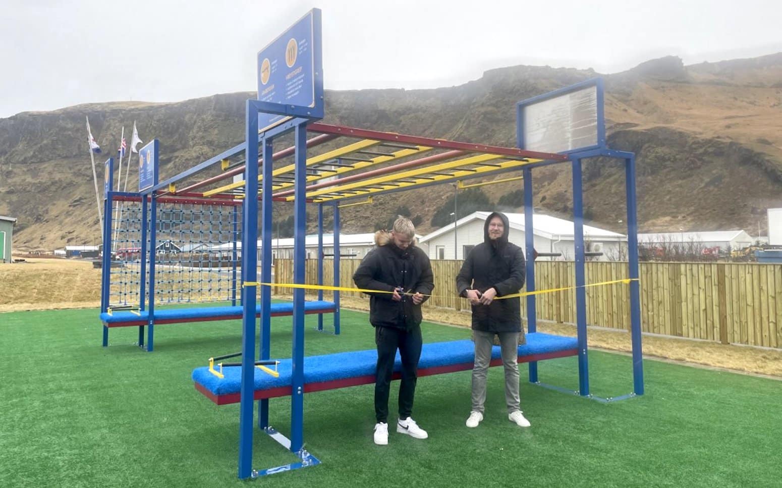 Fyrsta skólahreystibrautin á Suðurlandi var vígð í dag við hátíðlega athöfn við Víkurskóla í Mýrdal.