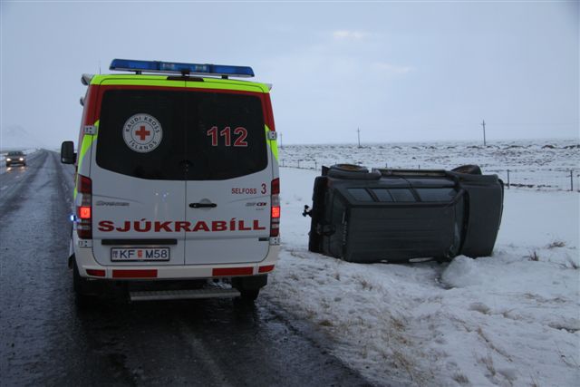 Auk bílveltunnar á Eyrarbakkavegi valt bíll núna eftir hádegi við Litlu kaffistofuna. Lögregla og sjúkralið eru á leið á vettvang, tveir voru í bílnum en ekki er vitað um meiðsli þeirra.