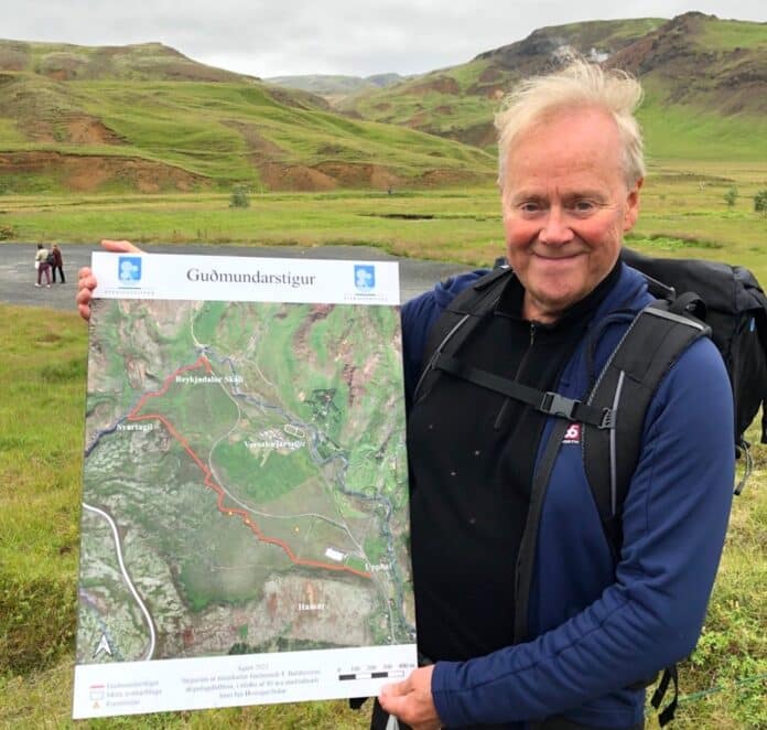Guðmundur er mikill áhugamaður um útivist og átti fyrir nokkrum árum hugmyndina að því að mörkuð yrði gönguleið frá goshvernum Grýlu og inn á Árhólma, innst á Vorsabæjarvöllum. Er stígur þessi einn af þeim skemmtilegri í bæjarfélaginu, þar sem hann hlykkjast meðfram hraunbrúninni, framhjá fornminjum, miklu skógræktarsvæði og berjalautum inn í enda á dalnum þar sem við taka gljúfur, fossar, flúðir og heitir lækir.