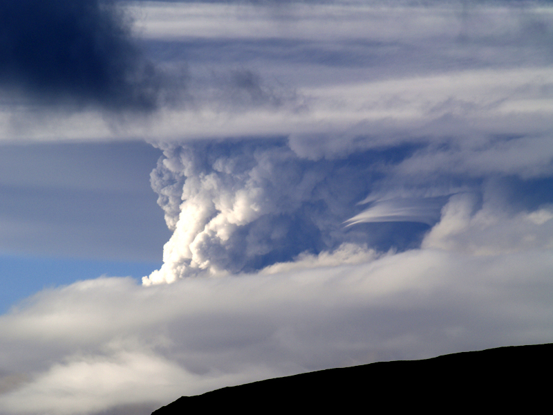 Áfram er búist við öskufalli víða SA-lands í dag. Minnkandi norðan- og norðvestanátt í dag, él norðaustantil en léttir til S- og V-lands. Norðvestan 3-10 og bjartviðri síðdegis, en hvassara austast. Hiti 2 til 12 stig að deginum, hlýjast SA-lands. Í gær kl. 18:00 hafði gosstrókurinn haldið 3-6 km hæð en vegna veðurfræðilegra aðstæðna hefur hann lækkað talsvert. Ekki voru eldingar í stróknum.