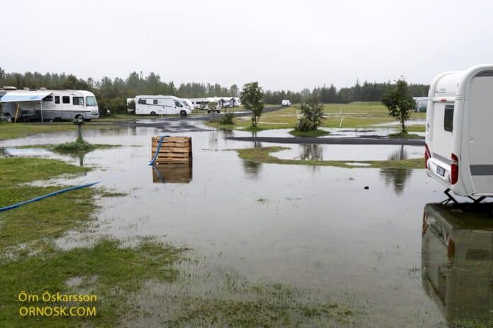 Gríðarleg rigning hefur verið á Selfossi síðastliðinn sólarhring en uppsöfnuð sólarhringsúrkoma er 66 mm.