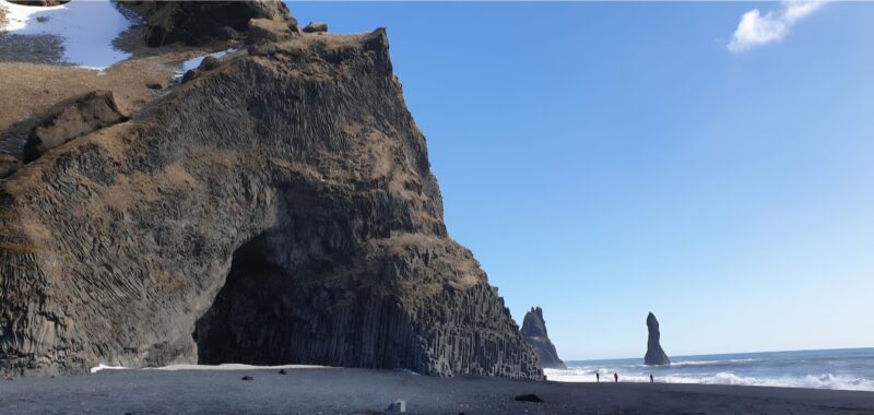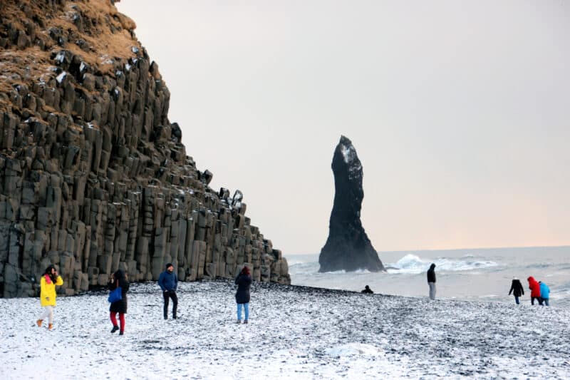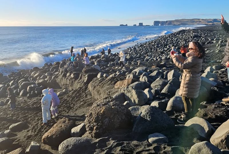 Eins og sjá má á myndunum hér fyrir neðan er allt annað landslag í Reynisfjöru þessa dagana heldur en fólk á að venjast.