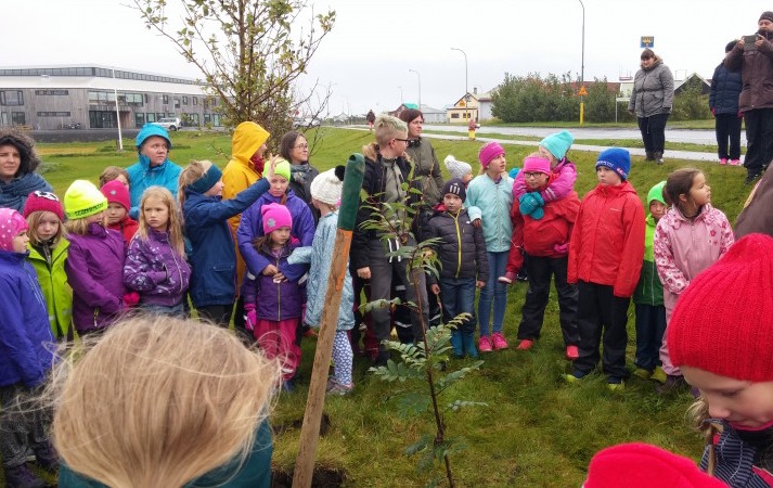 Nemendur í Barnaskólanum á Eyrarbakka og Stokkseyri tóku virkan þátt í Degi íslenskrar náttúru í síðustu viku og gróðursettu tré í Þuríðargarði ásamt hluta Bæjarstjórnar Árborgar í tilefni dagsins.