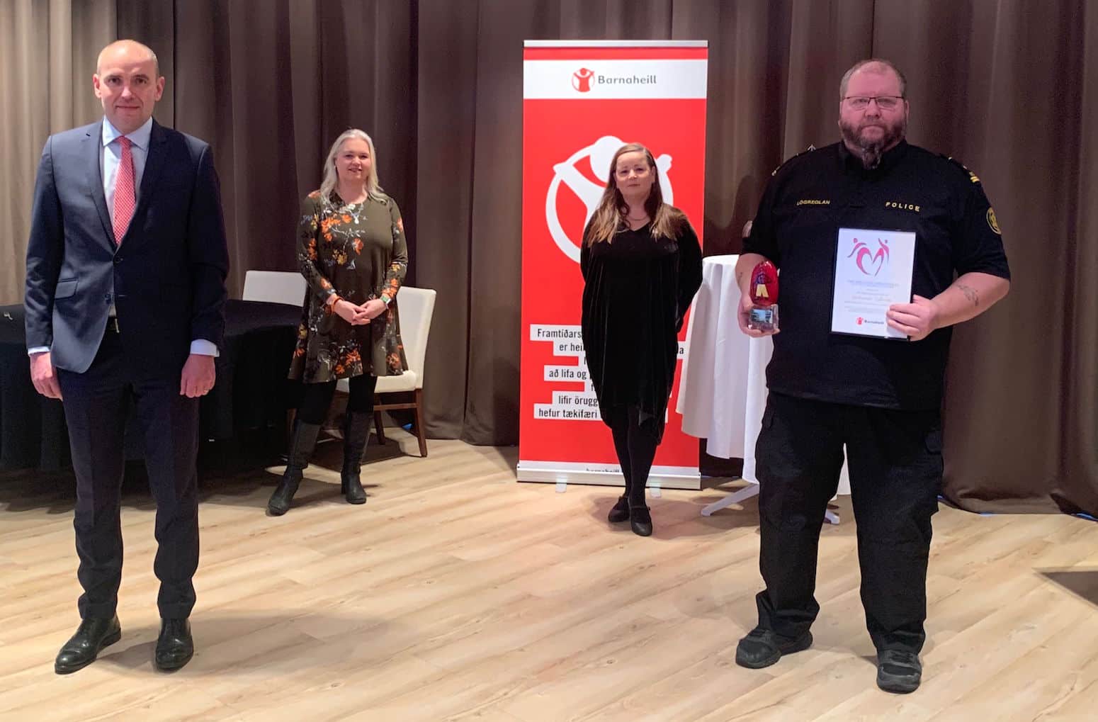 Lögreglumaðurinn Guðmundur Fylkisson hlaut í dag Viðurkenningu Barnaheilla – Save the Children á Íslandi árið 2020 fyrir störf í þágu barna og ungmenna sem eru í vanda og þá nálgun sem hann hefur í samskiptum sínum við þau.